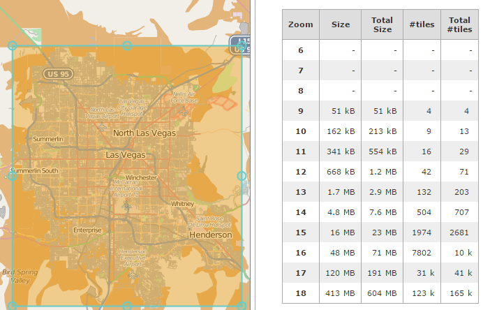 Zoom levels between 6 and 16 should be totally sufficient for land navigation, making whole Las Vegas map a 71MB download.