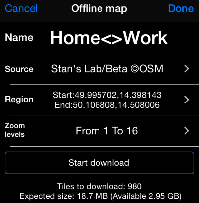 Maximum size of operational download for offline map 500MB (iPhone 5S)