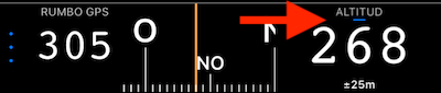 La precisión del GPS vertical se muestra siempre bajo el valor de altitud.