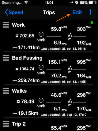 La lista de viajes se abrirá, aquí toque el botón Editar: