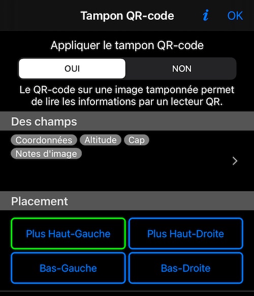 Vous permet de mettre un tampon QR-code dans l’un des quatre coins de la photo.