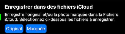 Option pour la copie automatique de la photo originale et / ou tamponnée dans des fichiers iCloud.