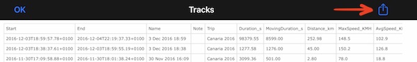 Lorsque vous partagez l’intégralité de l’archive/sauvegarde des trajets du compteur de vitesse comme décrit dans la section “Partage des trajets”, il vous suffit d’ouvrir le fichier .trk avec le compteur de vitesse et il recrée automatiquement toutes les données dans la sauvegarde/l’archive du trajet.