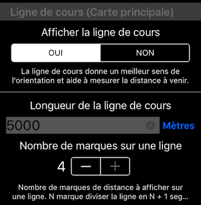 Vous pouvez configurer soit pour afficher la ligne du cours sur une carte ou non et si OUI, configurez sa longueur.