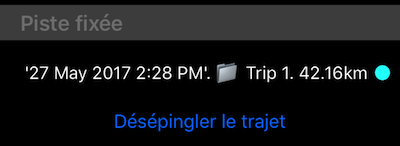 La piste fixée sera affichée sur toutes les cartes (à l’exception de la carte de la visionneuse de piste) en couleur cyan / hôte afin que vous puissiez re-tracer votre piste dans les directions vers l’avant ou vers l’arrière.
