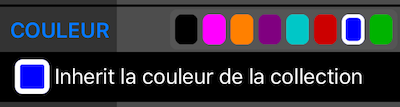 Dans la liste des collections, cette couleur par défaut est représentée par une petite “bande” colorée sur la gauche: