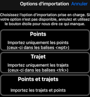 Importez des waypoints et des pistes à partir de fichiers GPX.