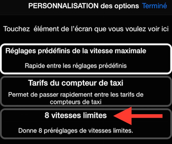 au-dessus des préréglages jusqu’à ce que les options de personnalisation s’affichent et choisissez l’option «8 vitesses limites»: