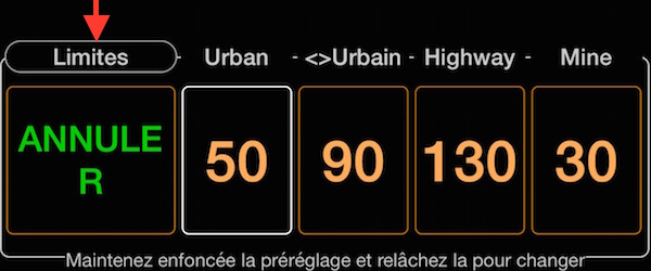 Une fois que le compteur a commencé à se rappeler des vitesses limites, il est devenu évident qu’il était nécessaire d’avoir plus de 4 valeurs pour cela. Appuyez sur le bouton «limites»: