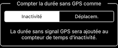 Par défaut, aucune heure GPS n’est ajoutée au temps d’inactivité. Je peux imaginer que vous voudriez l’ajouter à Moving assez souvent. Vous avez la possibilité! :)