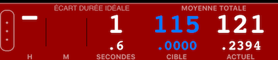 Dans l’exemple ici, l’écart par rapport à la vitesse moyenne idéale est de 1,6 secondes trop rapide, et le fond rouge indique qu’il se détériore: