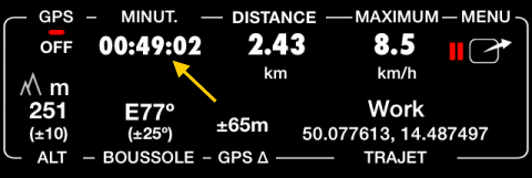 DocsVitesse 55Activer le MINUTEUR de trajetActiver le MINUTEUR de trajetVous pouvez activer le MINUTEUR de trajet en appuyant sur le libellé «MOYENNE» (iPhone, aucune action n’est requise pour iPad)