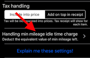 Lorsque vous définissez l’indemnité de kilométrage minimum dans le tarif avec lequel vous commencez votre voyage, vous avez 4 options pour savoir comment faire face au temps mort (vitesse inférieure à) avant que le kilométrage minimum soit atteint.
