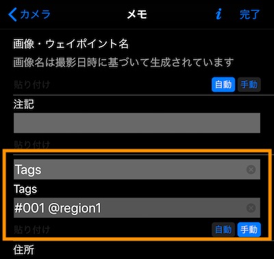 写真タグフィールドでポイントを注文します。 写真を撮るときに写真タグを編集できます(フィールドエディターボタンは右上のボタンです)。