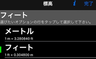 ドキュメンテーションコンパス 55高度の測定単位高度の測定単位このアプリでは、他のユニットとは独立して高度測定のためにメートルやフィートを設定することができます。関連ページ:面積と長さの測定単位(プラニメーター)。測定の一般単位 - メートル法、帝国法、海洋法。測定の距離単位。小型から大型ユニットへの自動切り替え。