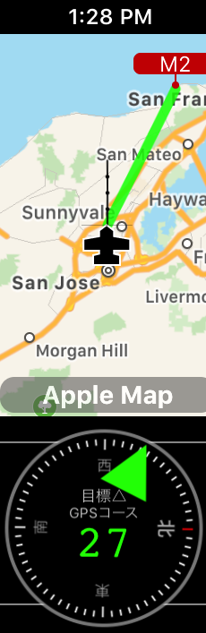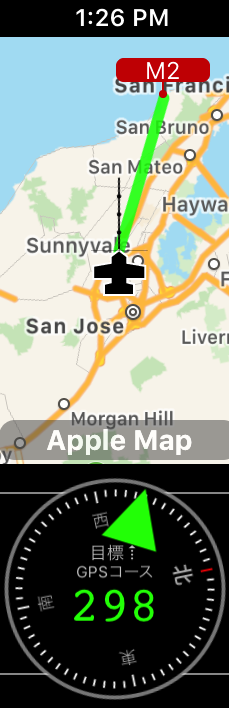 上記の例では、目的地までのコースは298度で、地図上のコースラインとして少し外れています。緑色の矢印がわかります。 また、以前の “目標"が “目標⇡"をどのように表示しているかに気づくと、これはdiffではなく “steer course"であるというヒントを与えます。