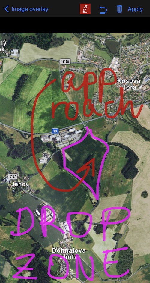 衛星地図のスナップショットを使用して画像オーバーレイを作成しましたが、上のストリートマップに追加しました。