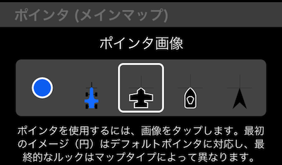 共通マップの設定には、メインマップの5つのポインタタイプから選択できる「ポインタ」セクションがあります。