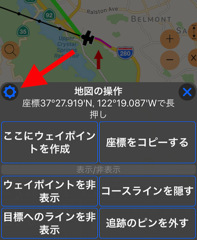 - 一般的な地図設定を開く(赤い矢印が指すボタン)