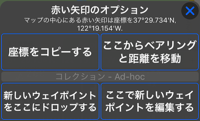 マップ上で指を押し続けると、「長押し」オプションが開きます: