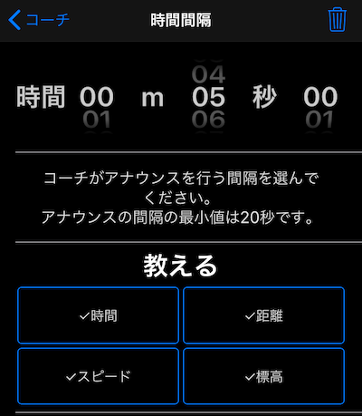 それをタップすると音声コーチの設定が開きます: