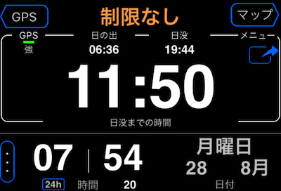 速度超過時のスクリーン点滅、日没までの時間