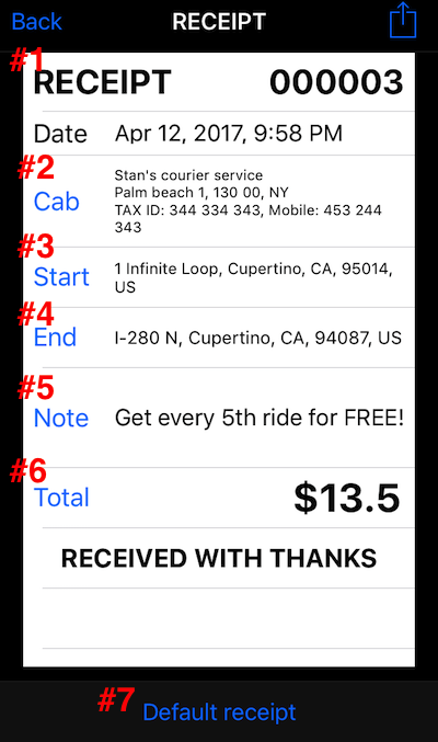 Default receipt shows minimum of information on a trip. Here is how it looks: