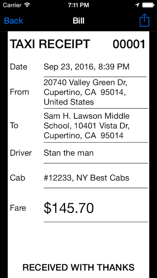 Also allows to automatically fill in pickup and destination address as you can see above in the bill.