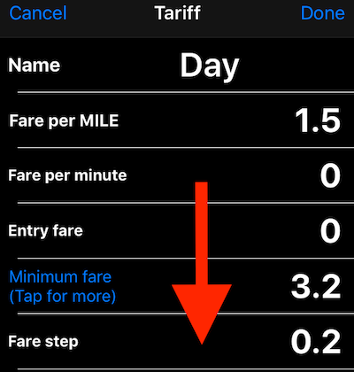 Simple mode avoids showing fare and current tariff details, showing current total and billed distance and time. Fare is only shown in the top part with big numbers as usual. Use MENU>MODES to switch between the detailed and simple views.