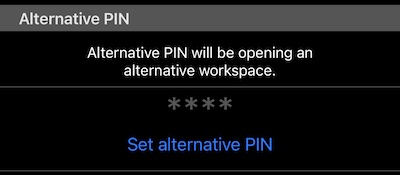 Você pode definir um PIN alternativo no aplicativo para abrir um espaço de trabalho alternativo com diferentes fotos. Se necessário, defina um PIN alternativo em Configurações> Acesso> seção “PIN alternativo”: