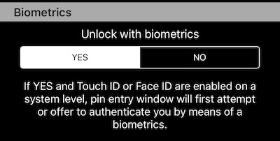 A partir da versão 1.7, os usuários do PRO têm a opção de bloquear o acesso ao aplicativo com base em um código PIN ou biometria.