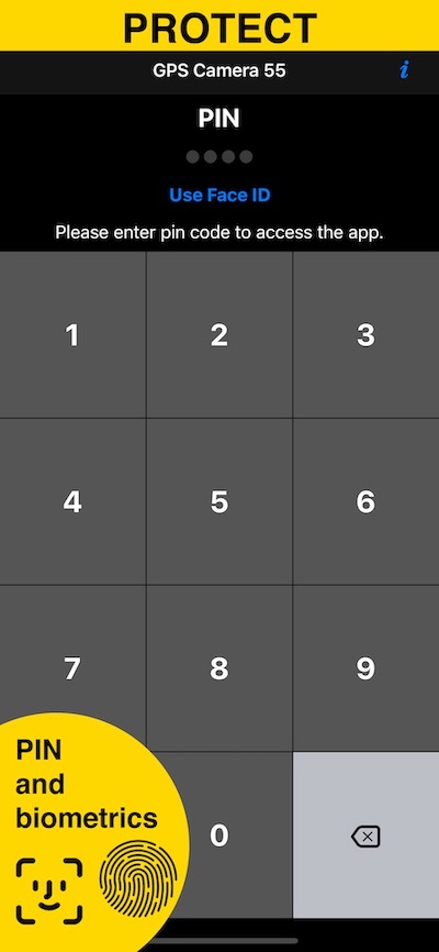 A partir da versão 1.7, os usuários do PRO têm a opção de bloquear o acesso ao aplicativo com base em um código PIN ou biometria: