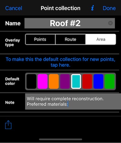 Botão com oferta para tornar esta coleção uma padrão tornará esta coleção a que está sendo editada no mapa. Assim, você não precisa selecionar essa coleção novamente para edição no mapa principal.