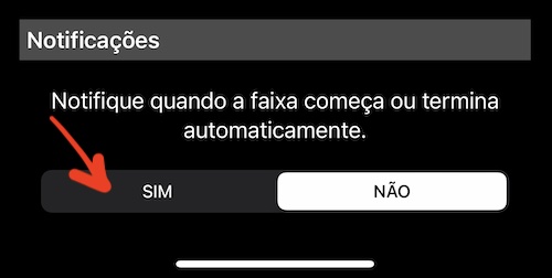 Pode ser uma ótima sensação saber que o aplicativo iniciou a trajeto e quanto ele rastreou quando parou a trajeto. Ainda na tela de configurações de rastreamento automático, role até a seção “Notificação” e toque em SIM para ser notificado quando os rastreamentos forem iniciados ou interrompidos: