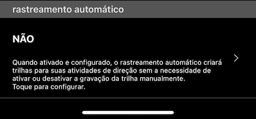 Toque nesta seção para abrir a tela de configuração do rastreamento automático. Aqui está o que você provavelmente verá: