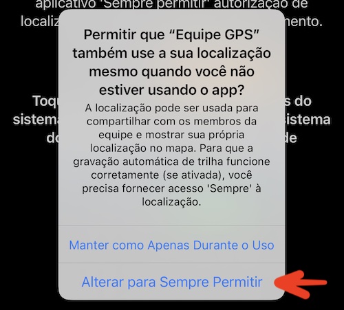 #1 é a autorização de localização atual, “Quando em uso” por padrão. Precisamos de “Sempre permitir” aqui. Toque em “Alterar para Sempre permitir”.