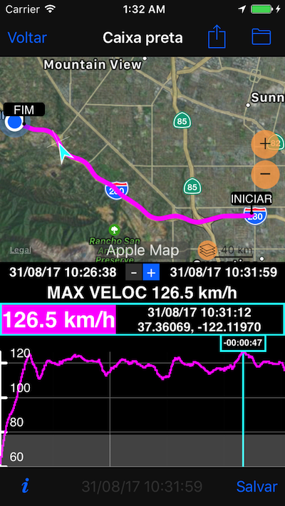 Se você precisar de mais de 30 minutos de dados GPS gravados, o [rastreamento GPS](../../../en/speedometer/gpstrack) é a melhor opção para você.