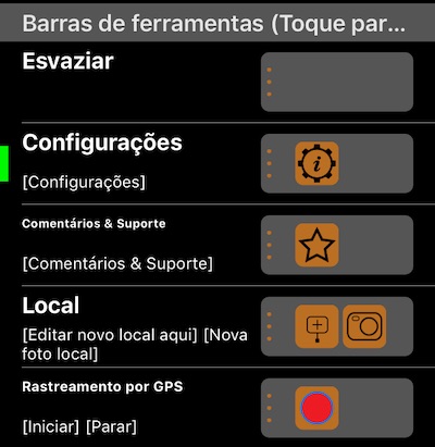 Controles de rastreamento GPS e novo “waypoint de foto” + “novo waypoint”:
