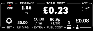 Lets see in a detail how to set UK MPG parameters for the live cost monitor. At all petrol stations in UK price is now per liter not per gallon and this price is in pence per liter. To open cost monitor settings please tap on a settings button in the cost dashboard: