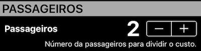 O painel de custos mostra você, então, a parcela de cada passageiro no canto inferior / direito.