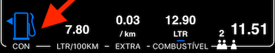 Opção de eficiência de combustível “Quilômetros por litro” para configurações de combustível “Litros”