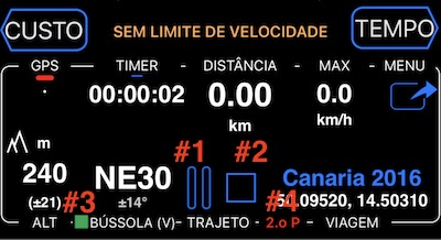 Treinador de voz para lembrá-lo da duração da viagem e da velocidade atual.