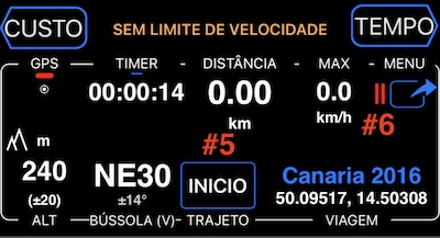Além disso, você verá o indicador de pausa (#6) piscando. Desta forma, entre a gravação das trajetos, os contadores atuais são pausados por padrão. Iniciar uma nova gravação de trajeto irá redefini-la e despausá-la.