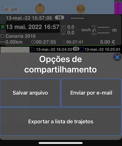 Para compartilhar as viagens inteiras com todas as suas trajetos como um único arquivo KMZ (Google Earth).