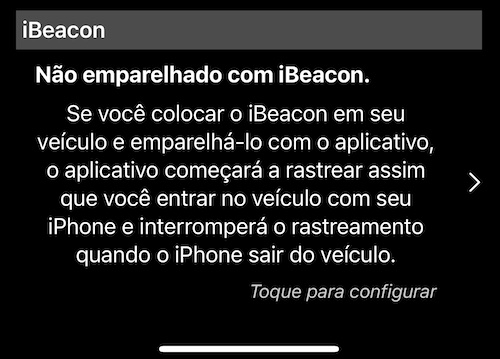 Toque para acessar a tela de configuração do iBeacon. Começa com a entrada iBeacon UUID: