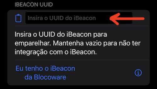 Use um botão “área de transferência” à esquerda do campo de texto do iBeacon para colar o UUID do iBeacon.