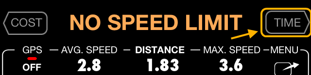 Por padrão, o velocímetro começa com a exibição da velocidade como sua leitura principal. Para mudar para o mapa, por favor, percorra os painéis inferiores à direita ou use os botões de deslocamento: