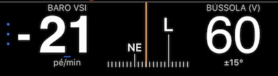 Criado para este modo, o painel “BARO VSI + Compass” (# 2) mostra a velocidade vertical mais a bússola: