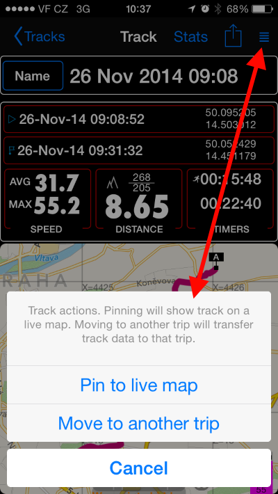 Escolha “Pin to live map” e agora você pode seguir o registro anteriormente rastreado para trás ou para a frente: