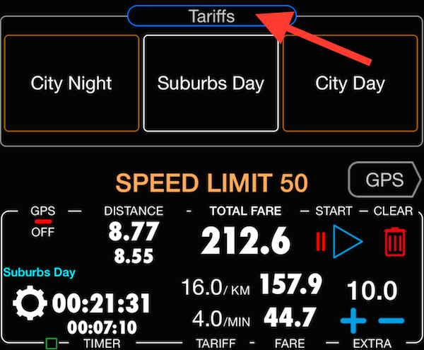 Se você ainda precisa usar essas tarifas “raras” que não estão presentes na mudança de tarifas, você pode tocar no botão de configurações no painel de controle de táxi / detalhes e escolher a tarifa a partir daí para ativá-la.